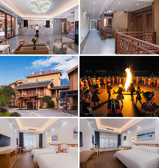 ☆☆【云门山遇见过山瑶酒店】酒店2021年开业,酒店位于乳源云门山景区内,群山环抱之中,周边森林植被覆盖率高达89.3%,负离子含量高,窗外可见山水风光,景致秀美,整体采用新中式ins风格装修,高端大气、宽敞明亮,给住客一个舒适的度假体验。周边自然环境优美。 集景区、住宿、餐饮、会务、休闲、娱乐等功能于一体。