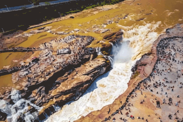 E、参观的金色瀑布-【壶口瀑布】,黄河巨流至此,山鸣谷应,声震数里,领略“天下黄河一壶收”的汹涌澎湃壮美景观。
