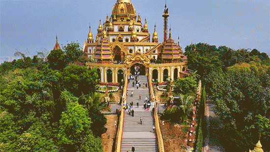 F、芒市游览【勐焕大金塔】,该塔堪称中国金佛塔,亚洲空心佛塔,属南亚傣王宫的建筑风格。