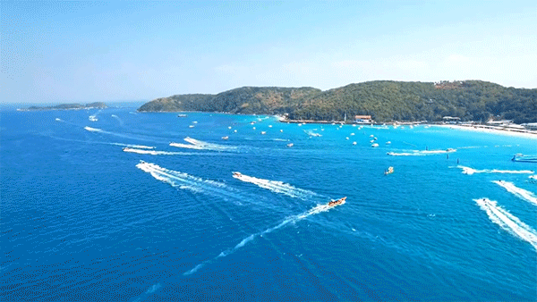 F、畅游:芭提雅,乘快艇前往【金沙岛】,在这里可以饱览海底奇景,海水清澈,礁石、小鱼、海蜇等等尽收眼底。