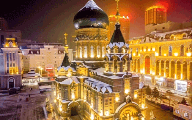 F、前往哈尔滨,漫步【中央大街】,欣赏东正第一教堂【圣索菲亚大教堂】,游览【斯大林公园】+【百年滨州铁路桥】。
