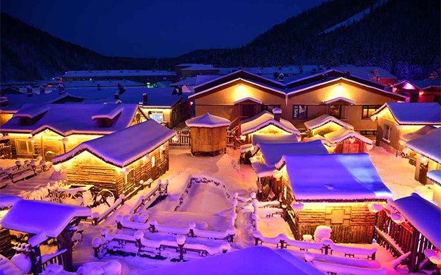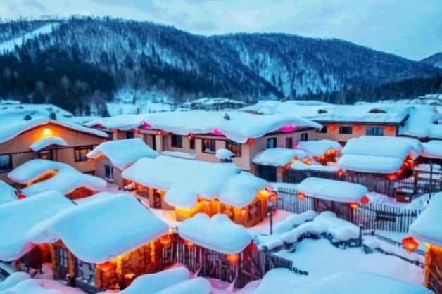 C、入住冰雪画廊-【雪谷】民宿,体验东北独有暖炕,体验泼水成冰;次天穿越醉美大雪山,穿林海跨雪源,乘雪地摩托车登顶【羊草山顶】。