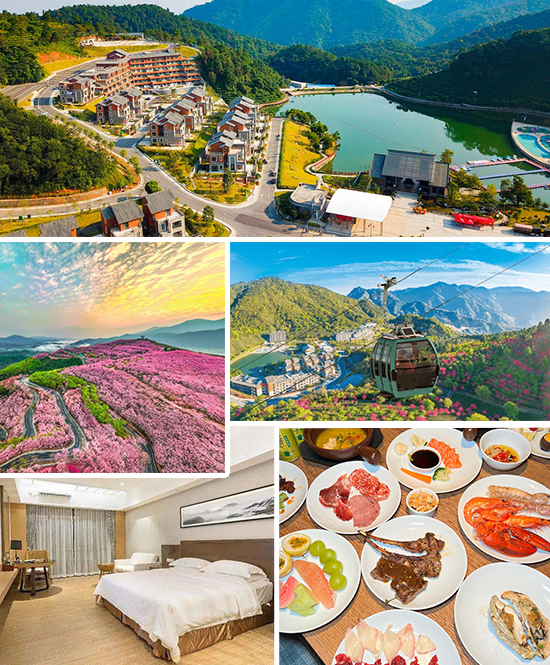 2、代订住宿:代订1晚新兴象窝酒店,山景双床房或两房一厅套房住宿费0元/人[单人入住需补房差,云泉谷茶汤泉/恒温山水泳池门票按床位赠送,每间房有2个免费门票的名额,多出的另购需88元/人];