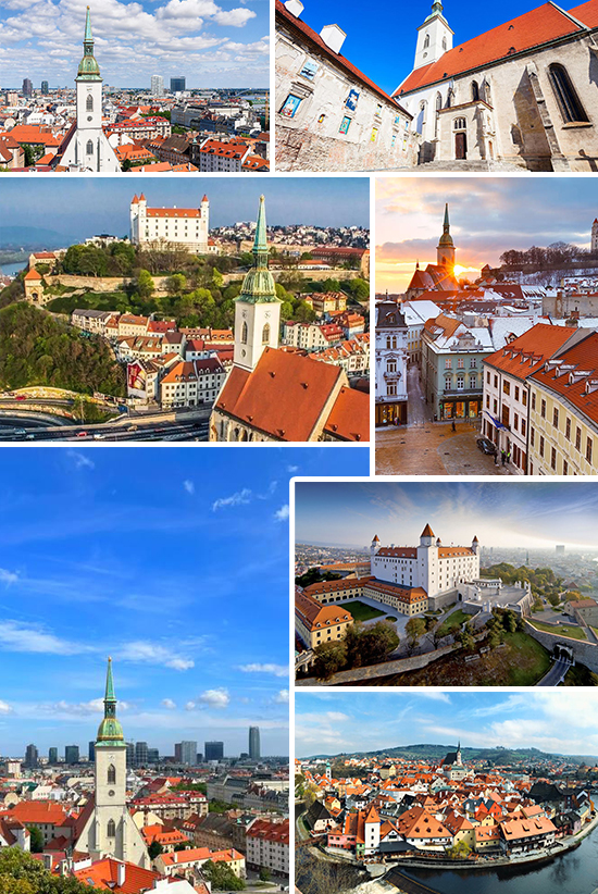 G、前往斯洛伐克共和国的首都-布拉迪斯拉发,它位于小咯尔巴仟山山麓和欧洲多瑙河两岸,有多处宝贵的文化和历史古迹。游览【布拉迪斯拉发城堡】+【布拉迪斯拉发老城区】。游览或外观【布拉迪斯拉发圣马丁教堂】+【布拉迪斯拉发大广场】+【悬索大桥】。