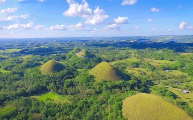 ☆☆随后驱车前往世界十大奇景之一【巧克力山】(哈利波特取景地),参观它是由1268个造型优美的圆锥形山丘所组成,每一座高度为40~120公尺,属石灰岩地形,每逢旱季山上的草干枯后变为深褐色,酷似巧克力,因此而得名,特别登上【比翼双飞观景坪】从顶峰处登高下望巧克力山群,景观会因时节不同产生变化,时而翠绿,时而火红,时而昏暗,让您叹为观止。